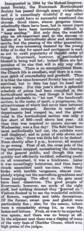 Evercreech Horticultural Society’s 48th annual Show opened in brilliant sunshine at Rodmore Park (by kind permission of Mr D Craddock) yesterday (Wednesday) afternoon. Soon after lunch a steady stream of patrons were entering the grounds to see what was undoubtedly one of the Society’s most successful events.